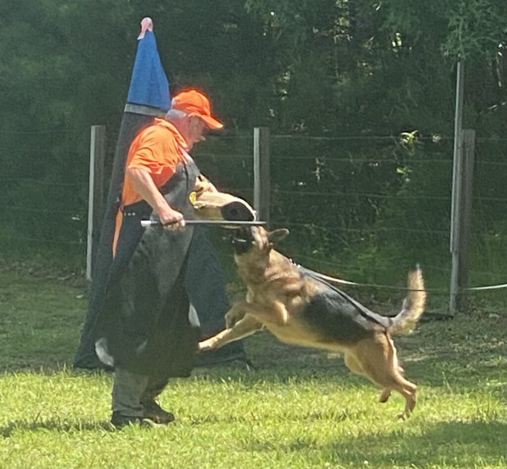 A dog that performs well in Schutzhund should demonstrate a solid temperament with a foundation of intelligence and utility. He will show a high level of trainability and happiness for his tasks. These traits are highly sought after in police K9s and Search and Rescue dogs. By participating in Schutzhund, we are keeping an important genetic pool alive for the dogs which serve and protect us. It also allows owners opportunity to enjoy an internationally recognized sport with their dogs, creating a stronger bond, and a safe, well mannered member of society.